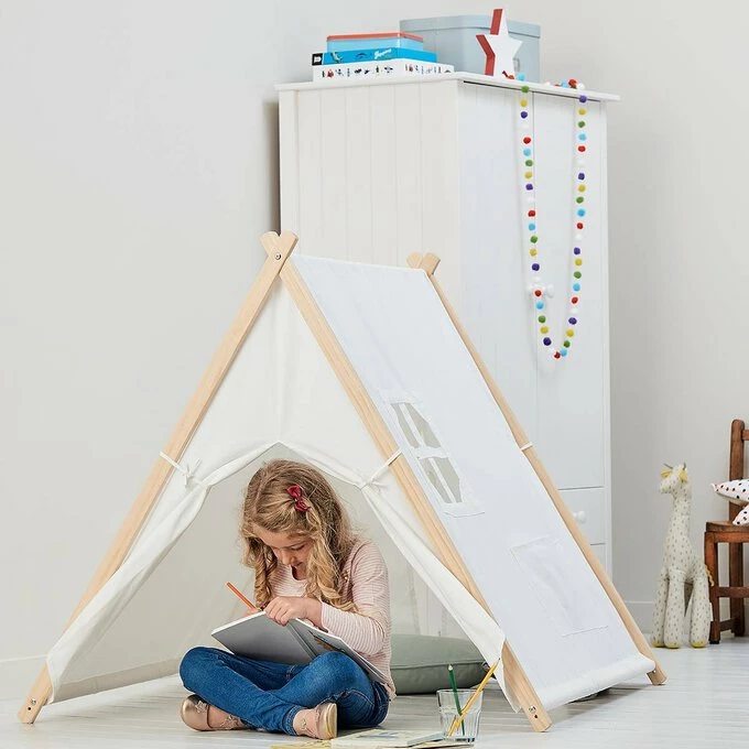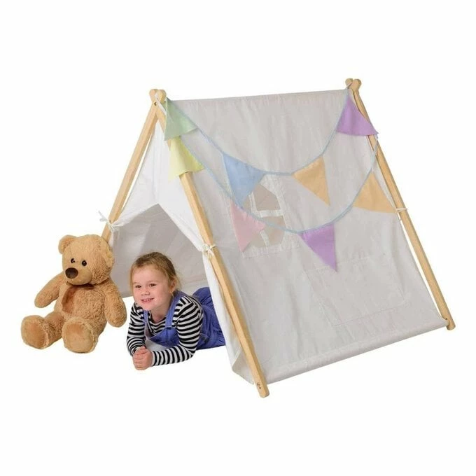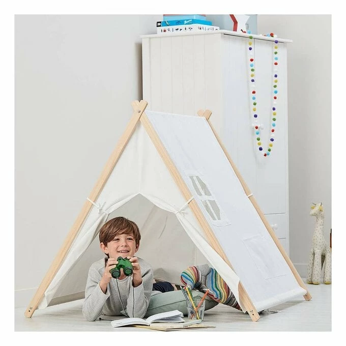 Transform the tent with colourful details. It’s perfect for hanging bunting around it, but you can also decorate the canvas with paints, pens, glitter, felt shapes, fabrics and more!