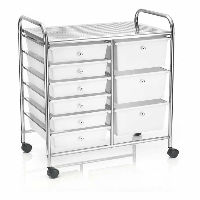 Matte White Rolling Organiser 9 Drawers