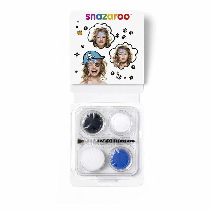 Snazaroo Blue Pirate Mini Face Paint Kit gives you the perfect set for transforming you into character! Follow the very simple three-step guide to recreate your favourite look.